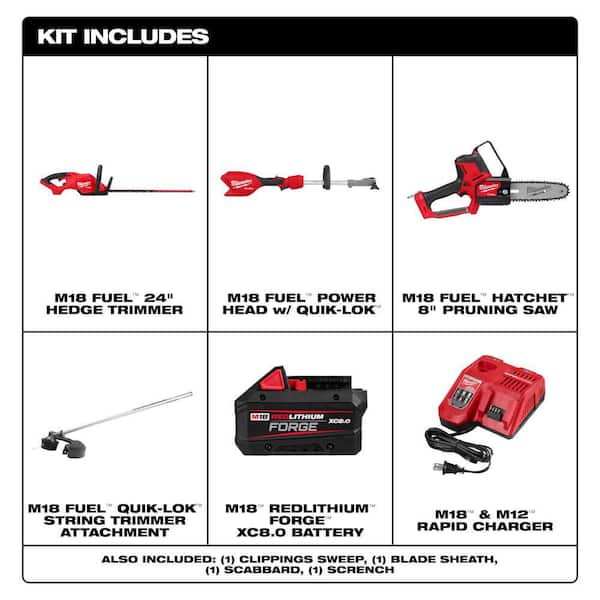 M18 FUEL 18V 24 in. Brushless Cordless Battery Powered Hedge Trimmer w/ String Trimmer, Pruning Saw, Battery, Charger