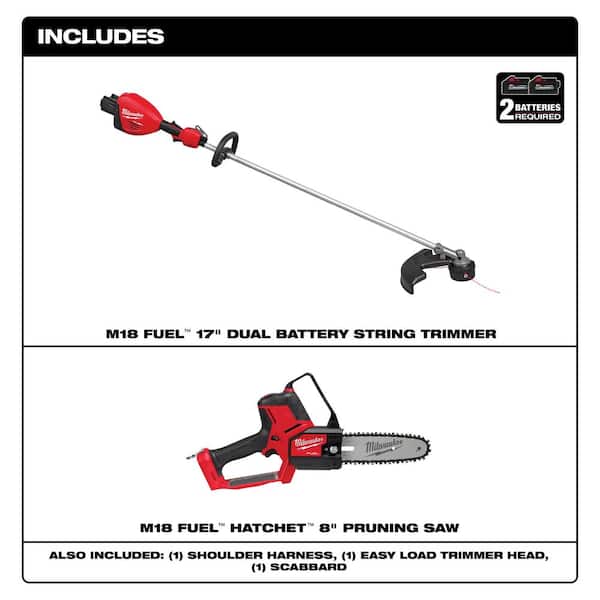 M18 FUEL 18V Brushless Cordless 17 in. Dual Battery Straight Shaft String Trimmer w/8 in. Hatchet Pruning Saw (2-Tool)