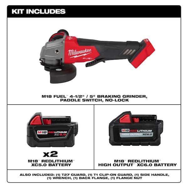 M18 FUEL 18V Lith-Ion Brushless Cordless 4-1/2 in./5 in. Grinder w/(1) High Output 6.0Ah Battery & (2) 5.0Ah Battery