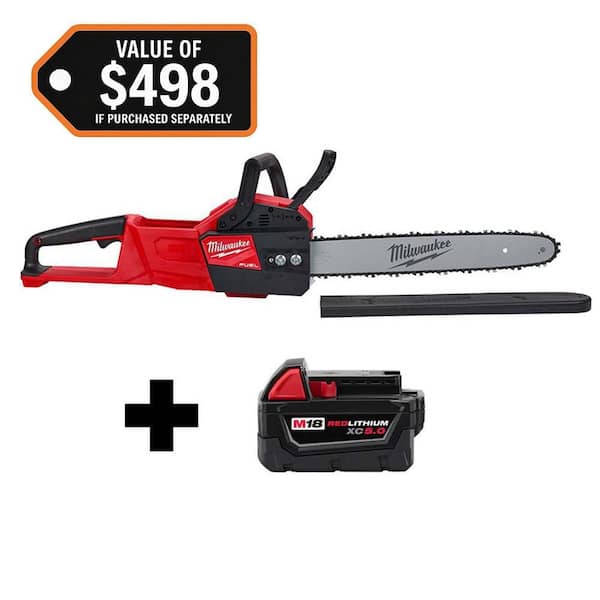 M18 FUEL 18V Lithium-Ion Brushless Battery 16 in. Chainsaw W/ M18 5.0Ah
