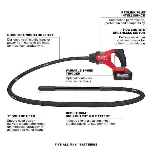M18 FUEL 18V Lithium-Ion Brushless Cordless 8 ft. Concrete Pencil Vibrator Kit with (2) 6.0 Ah Battery