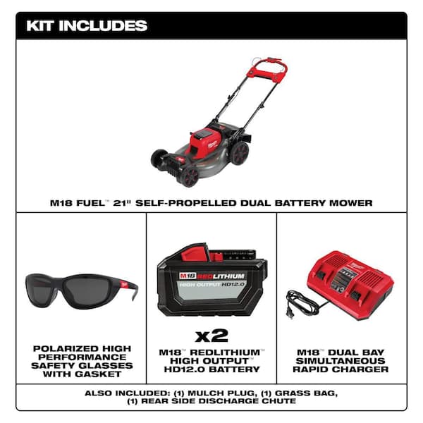 M18 FUEL Brushless Cordless 21 in. Walk Behind Dual Battery Self-Propelled Mower w/(2)12Ah Batteries & Polarized Glasses