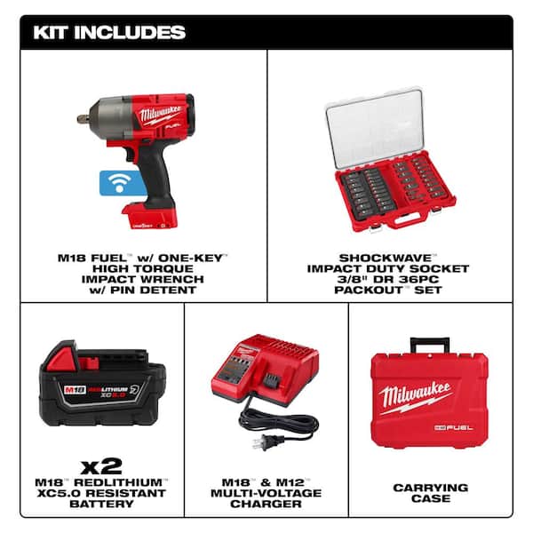 M18 FUEL ONE-KEY 18V Li-Ion Brushless Cordless 1/2 in. High-Torque Impact Wrench with Batteries & Impact Socket Set