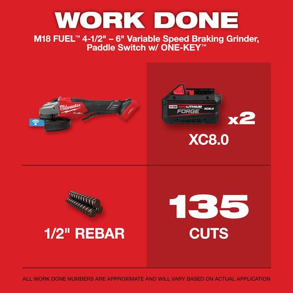 M18 FUEL ONE-KEY 18V Lithium-Ion Brushless Cordless 4-1/2 in./6 in. Variable Speed Braking Grinder w/ Bandsaw