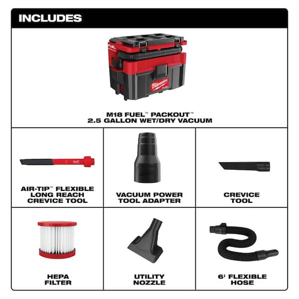 • 2.5 Gallon Wet/Dry Vacuum is Milwaukee PACKOUT™ compatible