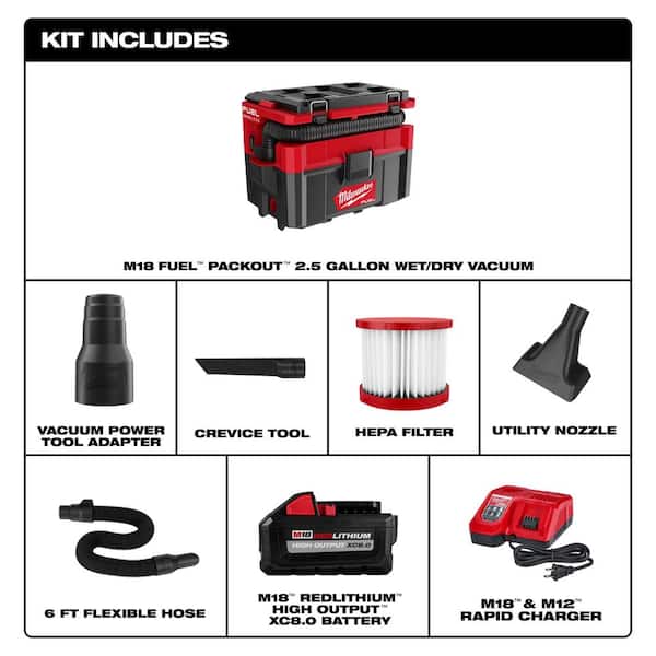 M18 FUEL PACKOUT 18-Volt Lithium-Ion Cordless 2.5 Gal. Wet/Dry Vacuum Kit with 8.0 Ah Battery and Charger