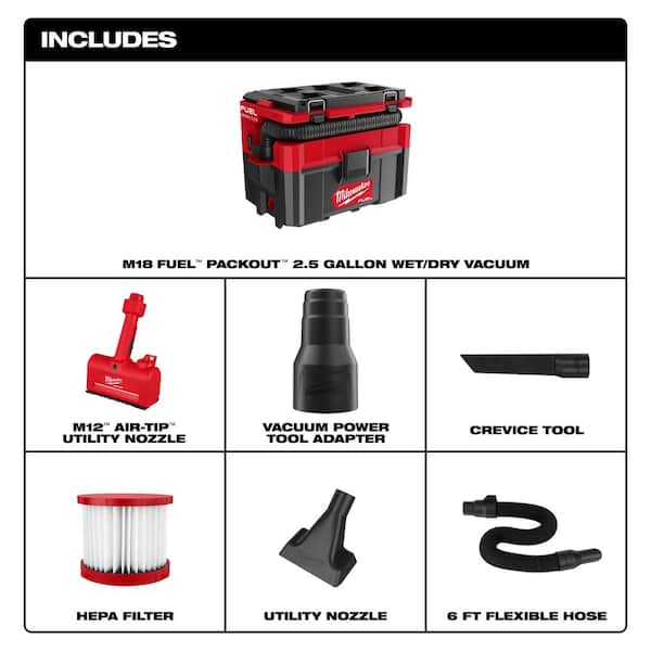 • 2.5 Gallon Wet/Dry Vacuum is Milwaukee PACKOUT™ compatible