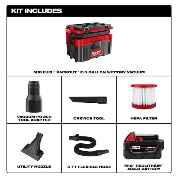 M18 FUEL PACKOUT 18-Volt Lithium-Ion Cordless 2.5 Gal. Wet/Dry Vacuum and M18 5.0 Ah Lithium-Ion XC Battery Pack