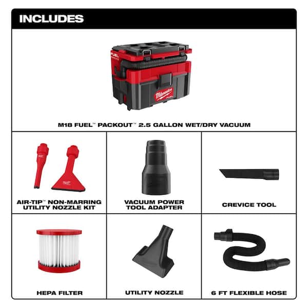 • 2.5 Gallon Wet/Dry Vacuum is Milwaukee PACKOUT™ compatible