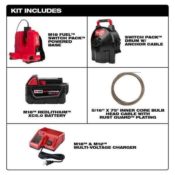 M18 FUEL18-Volt Lithium-Ion Cordless Drain Cleaning 5/16 in. SwitchPack Sectional Drum System Kit with FORGE 8.0 Battery