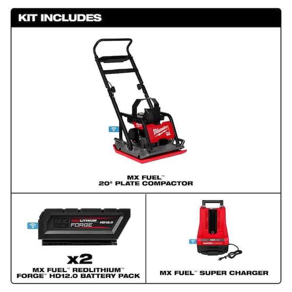 MX FUEL Lithium-Ion 20 in. Plate Compactor Kit with (2) FORGE HD12.0 Batteries and (1) MX FUEL Super Charger