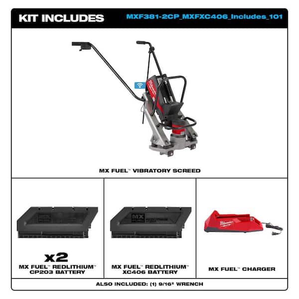 MX FUEL Lithium-Ion Cordless Vibratory Screed with (2) Batteries and Charger w/REDLITHIUM XC406 Battery Pack