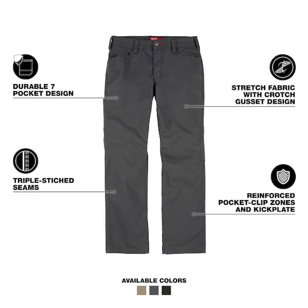 Men's 38 in. x 32 in. Gray Cotton/Polyester Work Pants with 7 Pockets