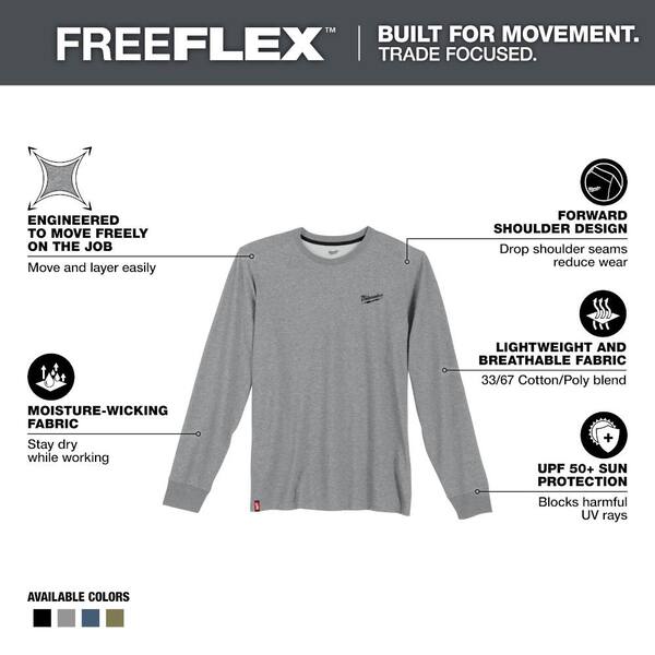 Men's 3X-Large Gray Cotton/Polyester Long-Sleeve Hybrid Work T-Shirt