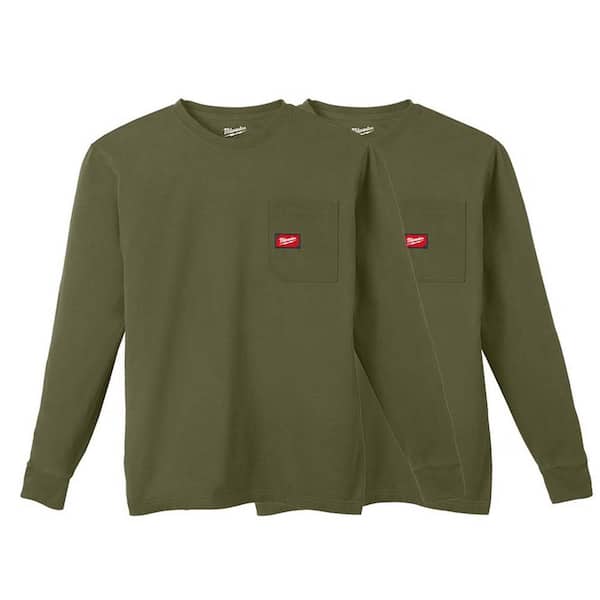 Men's 3X-Large Green GRIDIRON Cotton/Polyester Long-Sleeve Pocket T-Shirt (2-Pack)