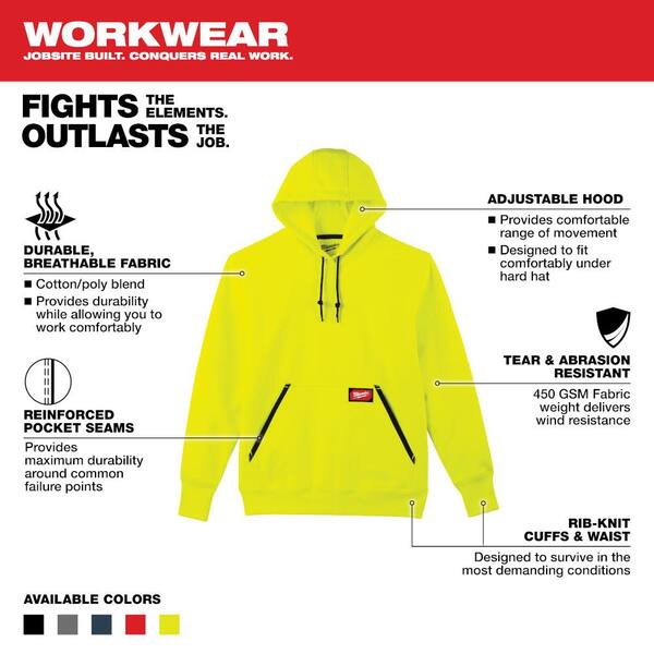 Men's 3X-Large Hi-Vis Heavy-Duty Cotton/Polyester Long-Sleeve Hoodie Pullover and Large Black Long-Sleeve Pocket T-Shirt
