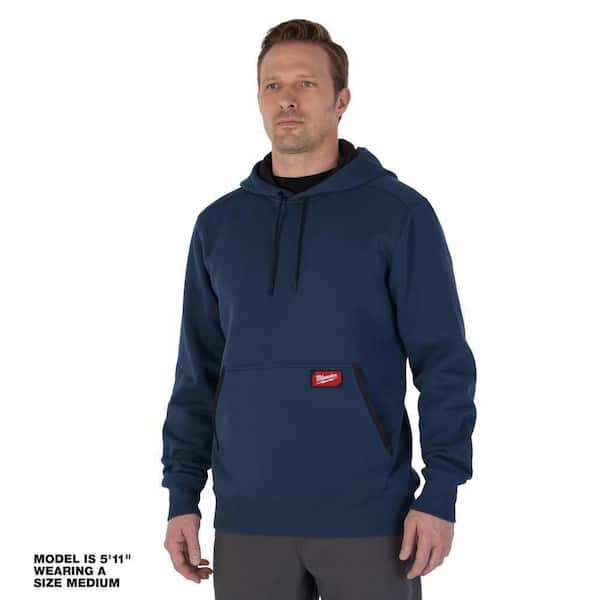 Men's Large Blue Midweight Cotton/Polyester Long-Sleeve Pullover Hoodie