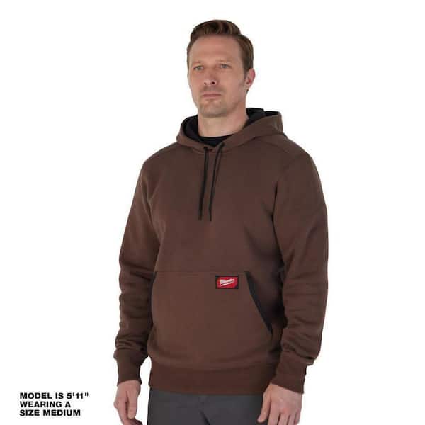 Men's Large Brown Midweight Cotton/Polyester Long-Sleeve Pullover Hoodie