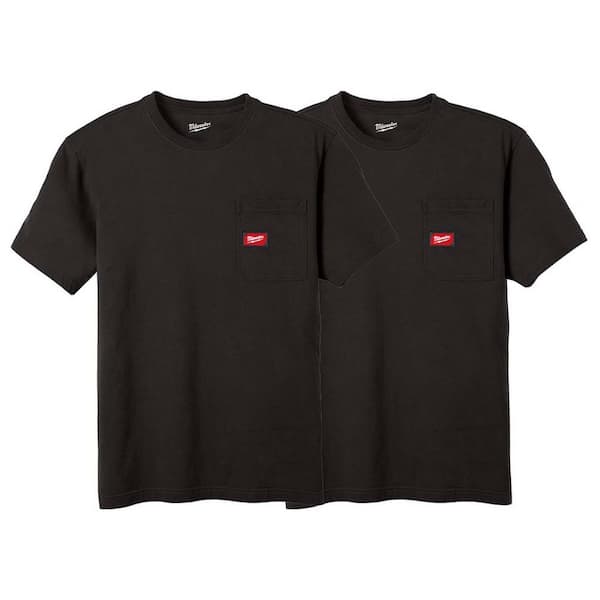 Men's Medium Black GRIDIRON Cotton/Polyester Short-Sleeve Pocket T-Shirt (2-pack)
