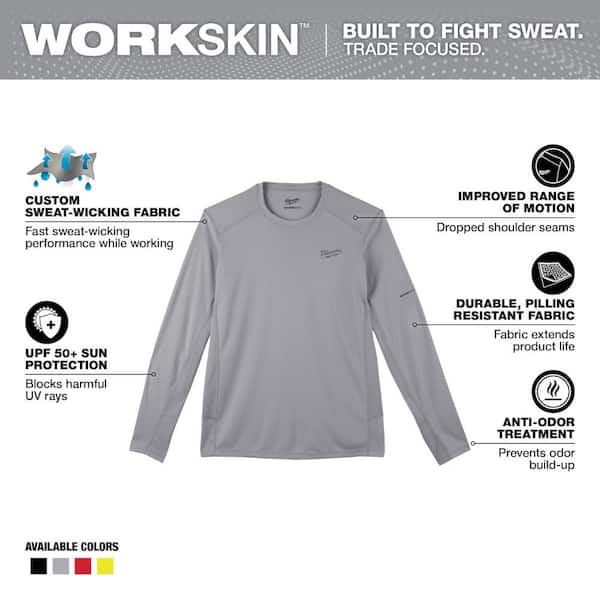 Men's Work Skin Large Gray Light Weight Performance Long-Sleeve T-Shirt
