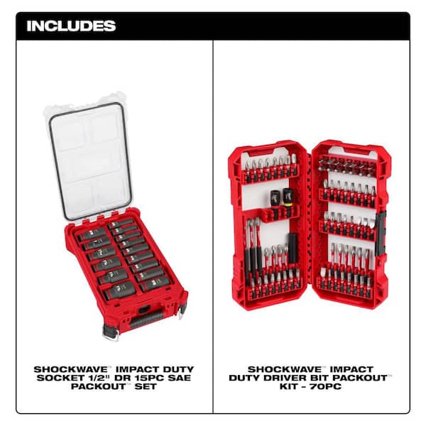 SHOCKWAVE 1/2 in. Drive SAE Deep Well PACKOUT Impact Socket Set & Screw Driver Bit Set w/PACKOUT Case (85-Piece)