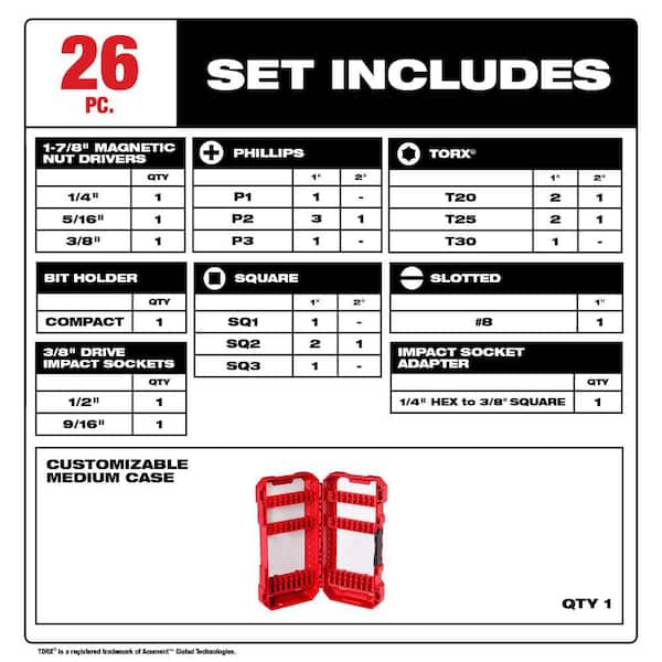SHOCKWAVE Impact Duty Alloy Steel Screw Driver Bit Set (26-Piece)