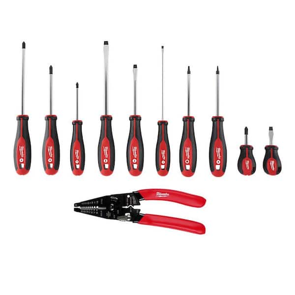 Screwdriver Set 10-28 AWG Multi-Purpose Dipped Grip Wire Stripper and Cutter with Reinforced Head (11-Piece)
