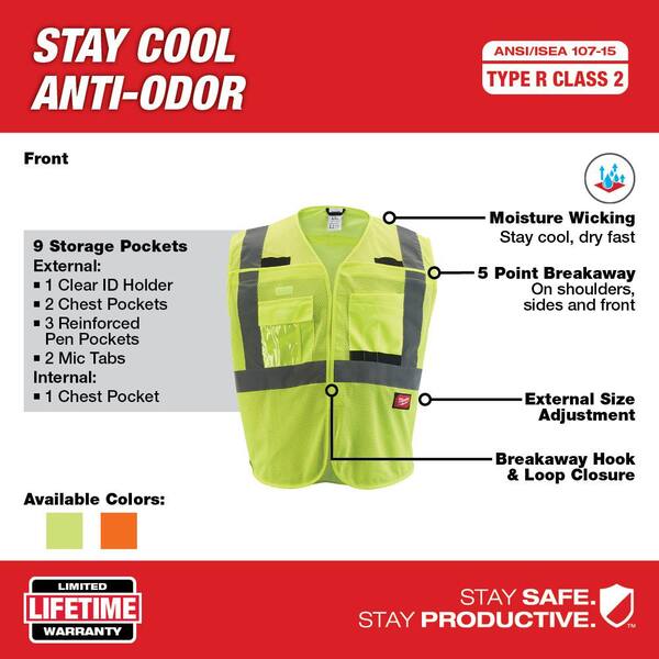 • Mesh safety vest is anti-microbial to prevent odor and bacteria