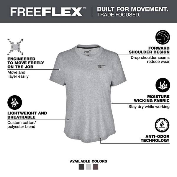 Women's X-Small Gray FREEFLEX Short Sleeve Hybrid Work T-Shirt