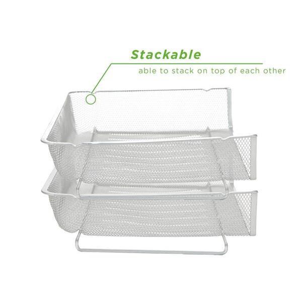 2 Piece Stackable Letter Tray, Desk Organizer, Document Holder, Magazine Storage, Desktop File Organizer, Silver