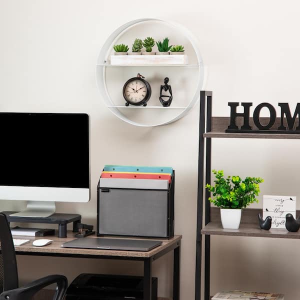 4 in. W x 18 in. D White Circular Decorative Wall Shelf, Floating Shelves, Wall Decor, Metal