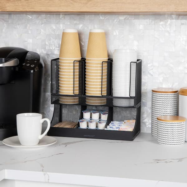 Cup and Condiment Station Countertop Organizer Metal Mesh 13 in. L x 6.45 in. W x 11.25 in. H, Black