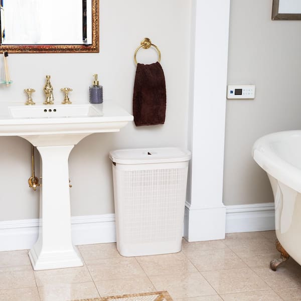 Ivory 23.5 H x 10.75 W x 18.5 D Plastic Modern 40 L Slim Clothes Basket with Lid Rectangle Laundry Room Hamper