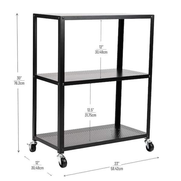 Rolling Cart, Rolling Cart, Microwave Stand, 3-Tier, Coffee Cart, Office, Metal, 23 in. L x 12 in. W x 30 in. H, Black