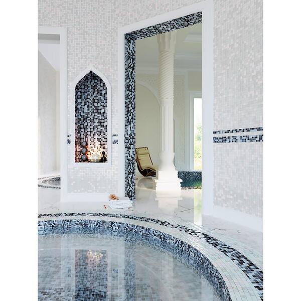 Mingles 4" x 6" Glossy Cotton White Glass Mosaic Uniform square Wall and Floor Sample Tile 0.13 sq. ft./Piece (1-Pack)