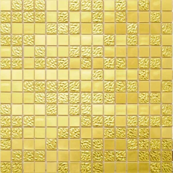 Mingles 4" x 6" Glossy Gold Yellow Glass Mosaic Uniform square Wall and Floor Sample Tile 0.13 sq. ft./Piece (1-Pack)