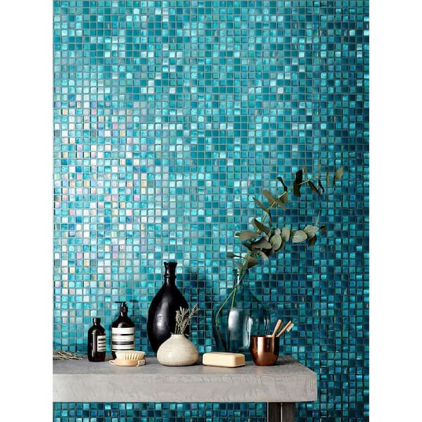 Mingles 4" x 6" Glossy Mint Green Glass Mosaic Uniform square Wall and Floor Sample Tile (0.13 sq. ft./Piece) (1-Pack)