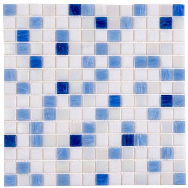 Mingles 4" x 6" Glossy White and Light Blue Glass Mosaic Uniform square Wall and Floor Sample Tile 0.13 sq. ft./1-Pack