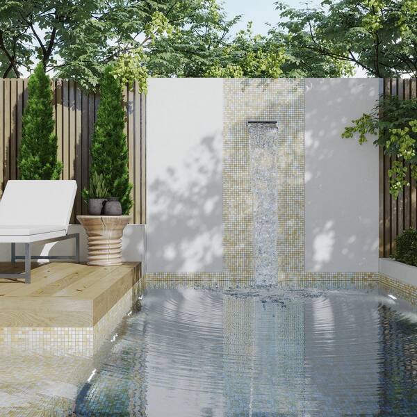 Mingles 4" x 6" Glossy Yellow Gold and White Glass Mosaic Uniform square Wall and Floor Sample Tile 0.13 sq. ft./1-Pack