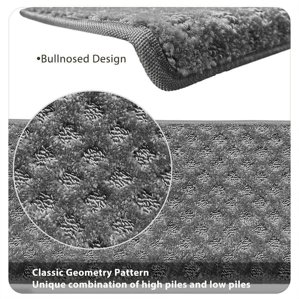 Mini Diamond Gray 9.5 in. x 30 in. x 1.2 in. Bullnose Indoor Non-slip Carpet Stair Tread Cover Tape Free (Set of 14)