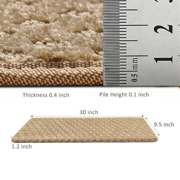 Mini Diamond Khaki 9.5 in. x 30 in. x 1.2 in. Bullnose Indoor Non-slip Carpet Stair Tread Cover Tape Free (Set of 14)