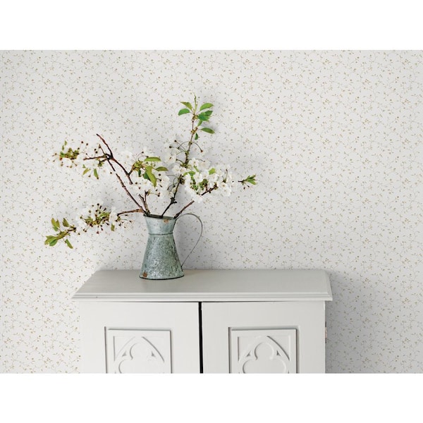 Miniatures 2-Beige/Cream Mini Floral Vine Design Matte Finish Non-Pasted Vinyl Non-Woven Wallpaper Roll