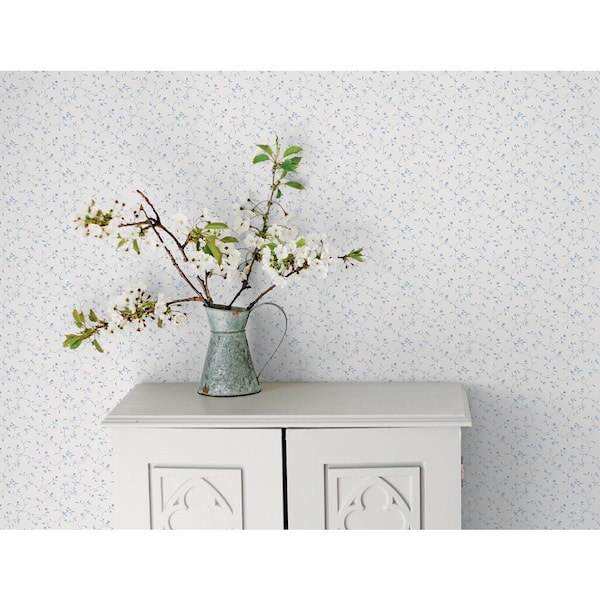 Miniatures 2-Blue/White Mini Floral Vine Design Matte Finish Non-Pasted Vinyl Non-Woven Wallpaper Sample