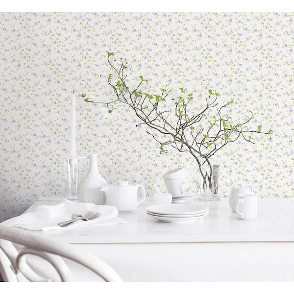 Miniatures 2-Lilac/Green/White Miniature Rose Trellis Design Matte Finish Non-Pasted Vinyl on Non-Woven Wallpaper Sample
