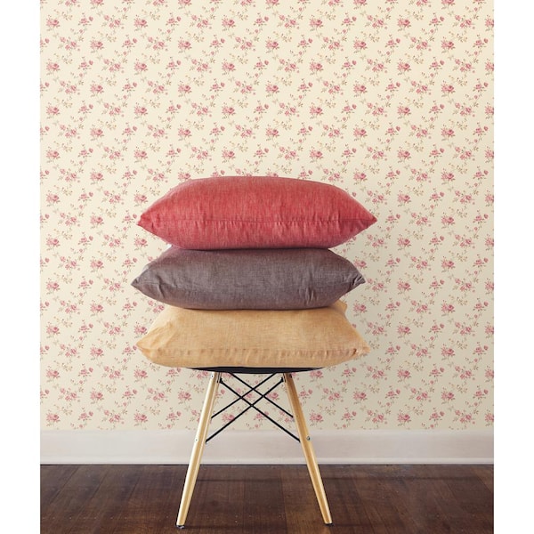 Miniatures 2-Pink/Green/Cream Rose Floral Trail Design Matte Finish Non-Pasted Vinyl on Non-Woven Wallpaper Sample
