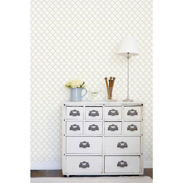 Miniatures 2 Pink/Green/Ivory Geometric Floral Trellis Design Matte Finish Non-Pasted Vinyl Non-Woven Wallpaper Sample