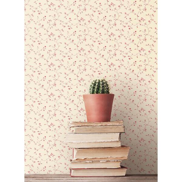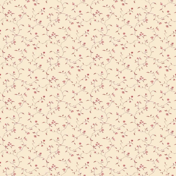 Miniatures 2-Red/Beige Mini Floral Vine Design Matte Finish Non-Pasted Vinyl Non-Woven Wallpaper Roll