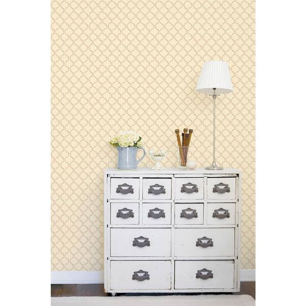 Miniatures 2 Red/Brown/Cream Geometric Floral Trellis Design Matte Finish Non-Pasted Vinyl on Non-Woven Wallpaper Sample