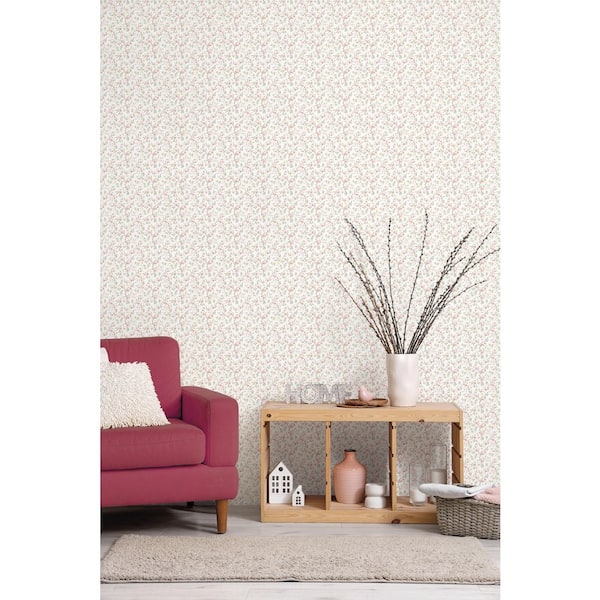Miniatures 3-Collection Pink/Taupe Garden Bird Matte Finish Vinyl on Non-Woven Non-Pasted Wallpaper Sample