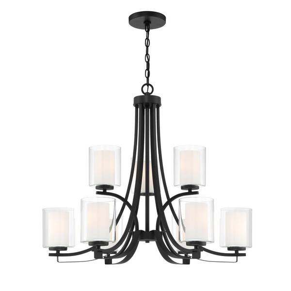 Parsons Studio 9-Light Sand Black Candle Style Chandelier with Clear and Etched White Glass Shades